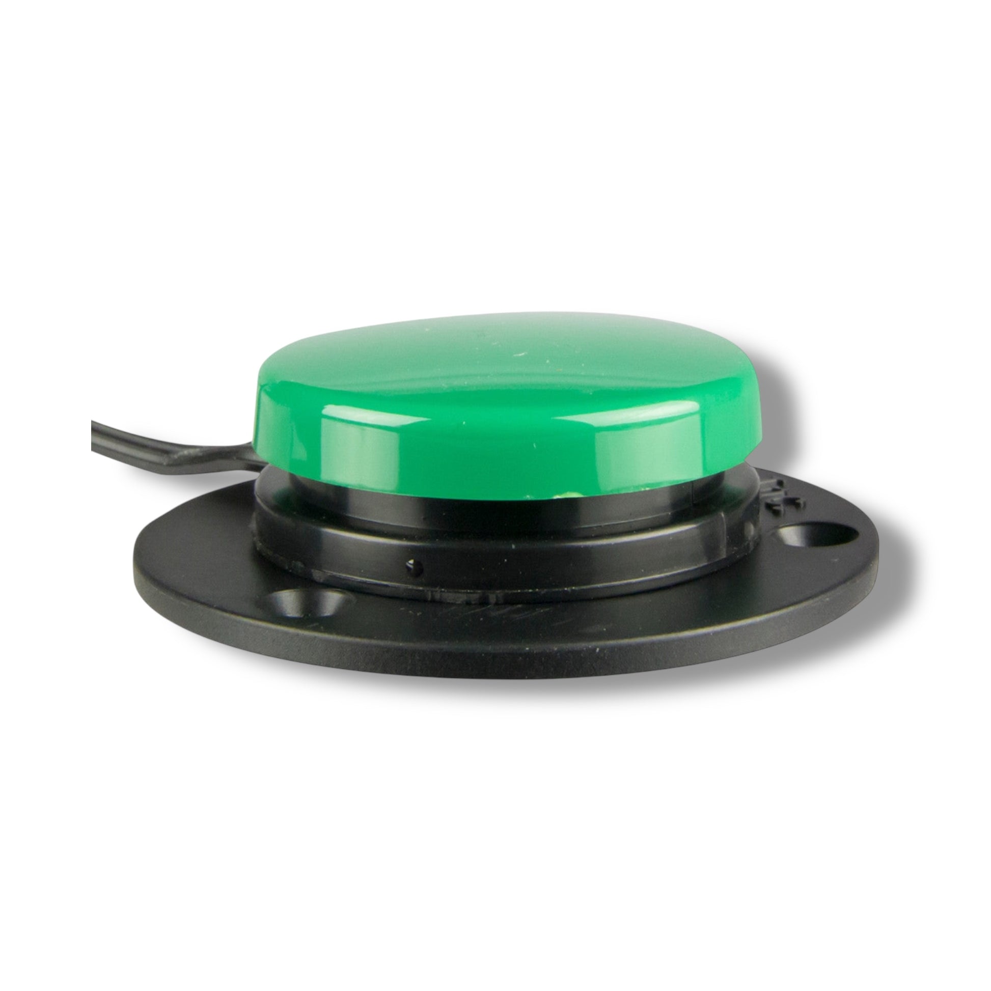 The "Specs" switch is a mechanical communication device. It is small enough to be worn but us typically used on a surface. It is designed to interact with other augmentative and alternative communication devices and allows individuals with disabilities to control and play with adapted equipment.